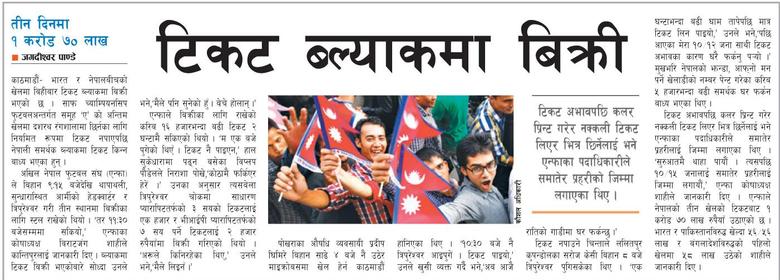 # WTF was that vid? Never expected that from "Timra Nayan" and "Luki luki" singer. # Why people from the country where Buddha was born buy/sell TICKET IN BLACK? ----------------------------------- # Well, it's all about self-dignity and pride of having Buddha being born in Nepal. I'd like to give an example: For all fathers who are living abroad and raising their kids; If your kid comes one day asking you the question with a confused facial expression,"Dad, was Buddha born in India?" Father: No son, who told you. Son: Well our History Teacher did. And, it's written in our textbook. How would you feel about that? ----------------------------- Putting example aside, coming to the facts, I saw news few years back that countries like Japan and Korea's elementary school history book contain the info like Buddha was born in India. Nevertheless, THIS (showing banner in stadium) is definitely not the way to solve but to show our stupidity. I don't know if our dear politicians have raised their voice about this issue in UN General Assemblies. OH, DARN!!...HAHA I JUST REMEMBERED OUR DEAR LADY NETAJI'S SPEECH FEW YEARS BACK IN UN Conference.