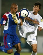 Mahendra Police Club and Tatung in goalless draw 22 September 2007 Action from the Mahendra Police Club-Tatung match. Photo by: AFC/Stanley Chou LAHORE: Nepal’s Mahendra Police Club and Chinese Taipei’s Tatung shared a point apiece from a goalless Group A encounter in the AFC President’s Cup here on Friday night. Both sides tried to break the stalemate with gusto in the dying moments of the match and both had their fair share of opportunities but the goal that would have separated the two sides remained elusive. The best of those chances went abegging almost at the final whistle, when Chung-Tzu Chen shot the ball past the rushing Mahendra Police goalkeeper Ritesh Thapa only to be spectacularly kicked back from the goal-line by Rakesh Shrestha. Compared to the goal-fest that this edition of the AFC President’s Cup has so far seen –with as many as 23 goals scored by four sides in the first three matches – this was rather bland stuff. Both Mahendra Police and Tatung were cautious, the latter infinitely more so. Mahendra tried to break the shackles with some enterprising forays but none produced a result as Tatung guarded the danger zone with aplomb. In its own half, Mahendra too gave nothing away. This produced a lacklustre first half. The second part of the game though saw creation of some serious moves, especially from Mahendra through a combination of Bhola Nath Silwal and Ju Manu Rai, both missing the target by the proverbial cat’s whisker. It was Ju Manu who fed a pass from the middle to his right winger Silwal, whose shot was tipped over the bar by the Tatung ‘keeper, Jen Feng in the 56th minute. In an almost similar move, Rai’s kick sailed over the head of the keeper. Before this, in the first real attacking move by a Tatung striker, captain Hui-Kai Tsai’s straight 35 meter drive was palmed over the top by Thapa. Tatung wasted the most gilt-edged of chances in the 81st minute when midfielder Tai-Lin Teng shot wide. Mahendra Police Club coach Birat Krishna Shrestha said after the match: “We could not prepare properly for this tournament due to bad weather in our country and two of our key players could not travel due to injuries.†Regarding today’s game he said: “We did get a few chances in the match but the players mistimed their shots in a hurry. I hope the players will do better in the next game.†Tatung coach Chiang Mu-Tsai said his team lacked in many areas. “The players did not get their rhythm in the first half. They did play well and were speedy after the restart but still they need to improve in many areas,†he said.