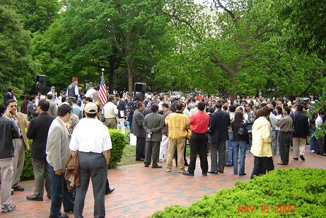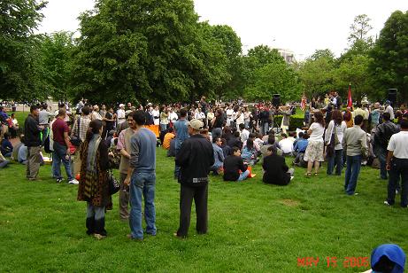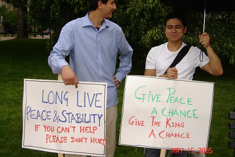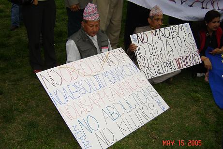 फेब्रुअरी १ को शाही-कदमको समर्थनमा डी. सी. र न्यूयोर्क मा केही पुराना राजावादीहरु, केही नवराजावादीहरु र केही आफु राजावादी नभएको तर बहुदलिय प्रजातन्त्रबाट मोहभंग भएको भन्ने शान्तिकामीहरुले गरेको ससाना प्रदर्शनलाई उनिहरुले "हजारौंले भाग लिएको विशाल पदर्शनहरु" भनेर नेपालको सरकारी संचारबाट प्रचार गराए । आजसम्म पनि नेपालबाट साथीसंगीहरु सोध्ने गर्छन्, के साच्चै अमेरिकाका सबै नेपालीहरु राजाको कदमको समर्थन गर्छन ? र यस्तो प्रश्न मलाई मात्र होईन मैले कुरा गर्न पाएका लगभग सबै अमेरिका-सहवासीहरुलाई नेपालका उनिहरुका आफन्तहरुले सोध्ने गर्दा रहेछन् । भनेसी प्रोपेगाण्डा कार्यमा अमेरिकाका राजावादीहरुले क्षणिक नै सही तर ठूलो उपलब्धी हासिल गरेछन् । प्रोपेगाण्डाको लागि सरकारी मात्र हैन गैरसरकारी माध्यम समेत प्रयोग गरे आयोजकहरुले । 'नेपाली टाईम्स' मा एकजना आयोजक महोदयले डी. सी. को प्रदर्शनलाई 'बहुसंख्यकहरुको प्रतिनिधित्व' (majority representation) भनेर दावी गरे । स्वतन्त्र माध्यमबाट गरिएका यस्ता पुटले 'राजमुकुट प्रति प्रतिबद्ध' सरकारी माध्यमहरुले गरेको प्रचारका अविश्वसनियतालाई कम गरे हुनन् । एनिवे, "के साच्चै अमेरिकाका सबै नेपालीहरु राजाको कदमको समर्थन गर्छन ?" भन्ने नेपालका आफन्त संगीसाथीहरुको प्रश्नको उत्तर दिंदा दिंदा हैरान हुनु भएका प्रजातन्त्रप्रेमी साथीहरु डी. सी. को नजिक हुनुहुन्छ भने यही Sunday, May 15, 2005 का दिन White House अगाडि हुने Pro-Democracy Rally मा पाल्नुहोला । नेपे जरुर उपस्थित हुनेछ त्यहाँ तपाईहरुसंग न्यानो अभिवादन साटासाट गर्न ।