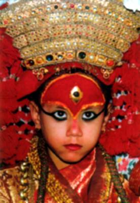 I have been worshipping Kumari since my childhood...all our family members worship her.I used to frequent Kumari ghar with her favorite food( Mango Fruti and lays) ...When the recent kumari was chosen(which was few years ago) I went for her Darshan....and there she was an innocent looking a complete goddess like figure stretching out her legs in front of me... I bowed to her with my utmost respect putting dam and leaving her food stuffs there ......expecting tika from her.She was really mischievious ..the way she used to put tika always used to depend on her mood..sometimes she used to take hours to decorate ur forehead and sometimes she just used to touch it...I just used to smile at this...Must say she was quite fascinated by my sandals and bags.She always used to stand there and watch me closely when I was putting back my sandals and my bag which was picked up from one of the flea market of India. I used to sit there for hours watching her play with her pet( white Japanese Spitz ).and the ugly looking Chinese dolls...I saw her growing up each year I went there for my visit..but her eyes never grew up.I can still see the same eyes I saw the very first time when she was chosen the KUMARI.It never changed with the time My birth has been always associated with this living deity..... I just believe in her....and share very informal relationship with her.... Well, abolishing everything is not the right solution to every problem....but finding the rite way to get rid of the problem and to tackle the situation in the better way is...we should not let such institution just die away...yeah of course we should improve and change the way it has been carried through out the years...... Darshan Ajima!.....I hope to pay u Darshan when I will get back to Ktm . and this time I will come with Belgian Chocolates ..I know u will love it.......