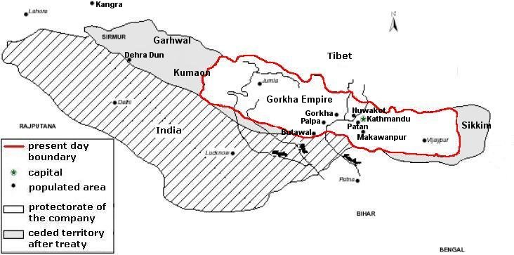 as we all know nepal lost its land to british india and those lands were not given back to nepal after indian independence.this issue was not seriously taken my nepalese leaders from that time till now.in fact, people in power have been whorizing our country since long time.first there were those mo'fukrs rana prime ministers,then the kings after rana rule and after that several politicial leaders in the democracy period.now i hope the new powerful people in nepal,i think which is maoists and the other politicians wont do the same to our country ,otherwise the whole country could be ceeded to india. here is the map of nepal before sugauli treaty. for more information http://en.wikipedia.org/wiki/Sugauli_Treaty