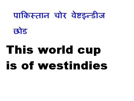 Calling all westindian supporter. This world cup is of westindies. The swan song for Brian lara. Jaba football world cup suru bhako thiyo, i was probably one of the first in sajha one who said italy were destined to win the world cup. Now i will say the same thing for westinidies. I dont care if i am the only supporter of westinides in sajha because i know nobody could stop the windies. If you love flamboyance, unorthodox cricket , if you like charisma this room is for you.