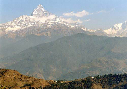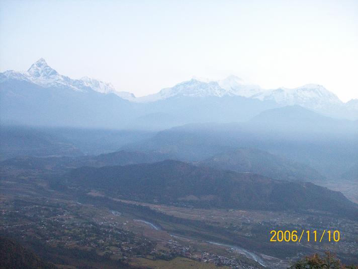 Machchhapuchchhre Himal arguably the Queen of the Himalayas, stands loftily atop the Pokhreli Skyline.