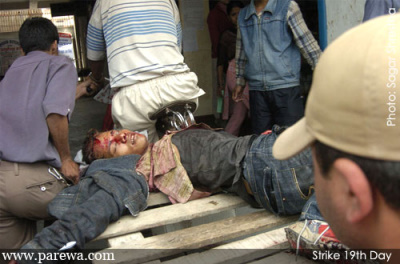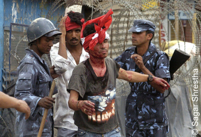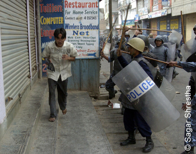 sayami how many of these unfortunate people did you or anyone else here in Sajha knew personally? They were poor people that the political parties used for their personal agenda. The kid got beaten, but the person who provoked a kid to go and protest was probably busy sending his children to some private boarding school. What do you expect the common cop to do? Get stones on their own head so that the communists can break all infrastructures of the country? What has Gyanendra done? What’s his offence? Not paying electricity bills and using state funds for personal agenda. I would rather have one Gyanenda taking peoples money rather then 55 of them (gyanendras) raping the country. Lastly, even the cops have a family and they want to go home without beating anyone. But they have to use force when things go out of hand. It’s the politicians who sold themselves to the Maoists who should be penalized and not the king who at least tried to save Nepal from harms way.