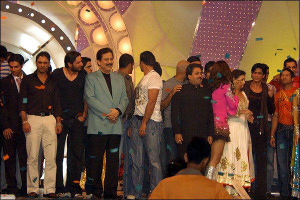 Pak Players and Indian Players with exhausted King Khan after dancing