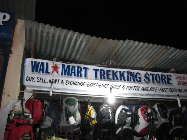 Must be opened by someone who returned from the US because Thats the actual Logo of WALL*MART. Its funny. they should open a momo shop with the name McDonalds, Mithai Pasal with the name TARGET, tea pasal with the name DUNKIN DONUTS or STARBUCKS, and Name Bishal baazar K MART LOL, and a tailor shop as GAP........just for laugh guys I mean no Disrespect.