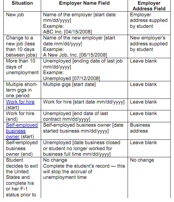 This is how DSO updatas the employer information in SEVIS sytem while student in OPT and shows the information needed by the DSO to do so in various situations.